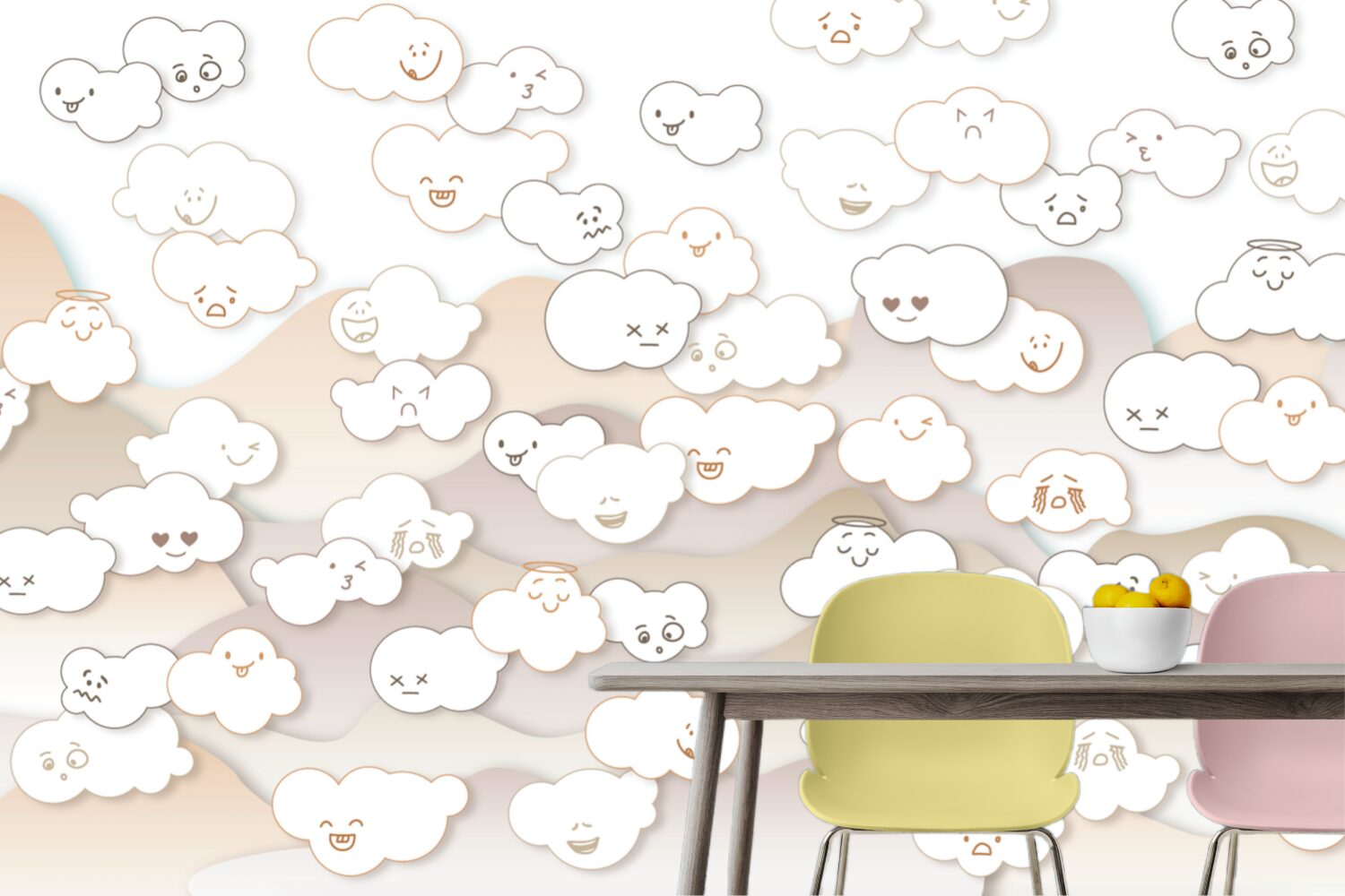Debesų veido išraiškos nuo laimingo iki liūdnos sukuria įdomų ir interaktyvų vaizdą. Jis padeda vaikams suprasti, kad emocijos yra natūrali dalis gyvenimo, ir skatina juos išmokti jas atpažinti bei išreikšti.
